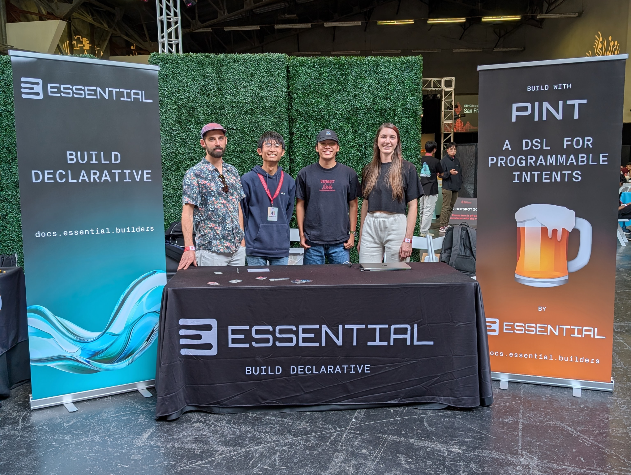 This year’s ETHGlobal San Francisco was a weekend filled with incredible innovation and creativity. We were thrilled to see so many talented teams come together, pushing the boundaries of blockchain technology and building on the Essential blockchain. Each project showed a unique perspective on what's possible with a declarative approach leveraging Pint and showcasing the versatility of the Essential ecosystem.